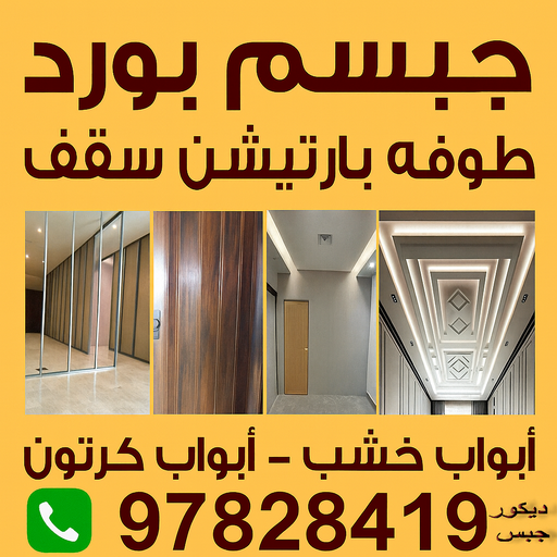 معلم جبس بورد بالكويت – اسقف معلقة – تركيب طوفة جبس بورد – تركيب 60*60 – تركيب ابواب اكورديون
